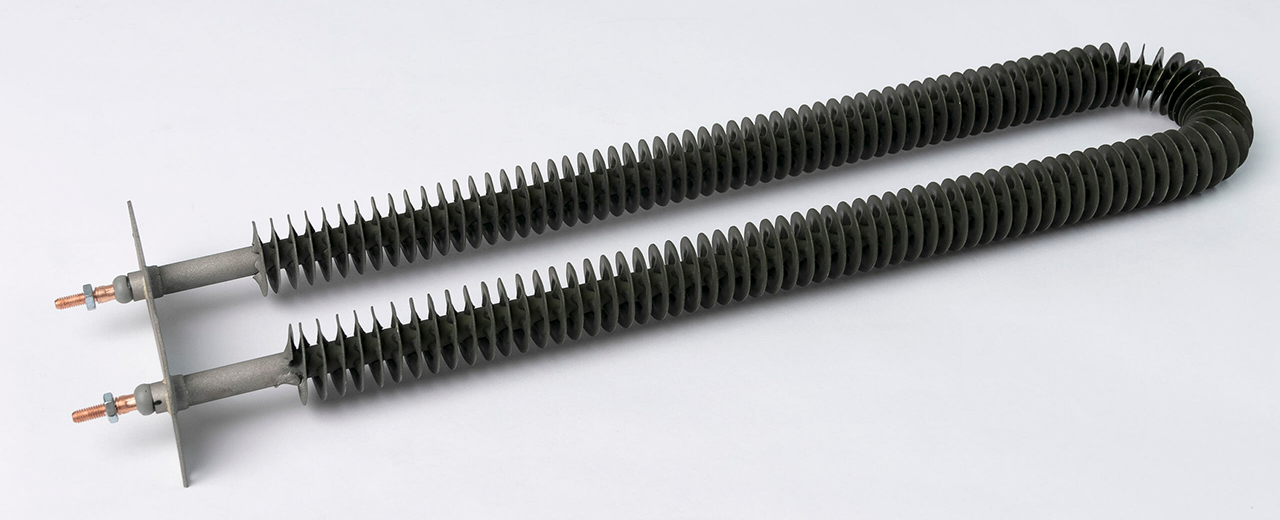 Las resistencias en forma de «U» aleteadas están diseñadas para calentar el aire. Son frecuentes en conductos de ventilación o sistemas donde el elemento a calentar es el aire.